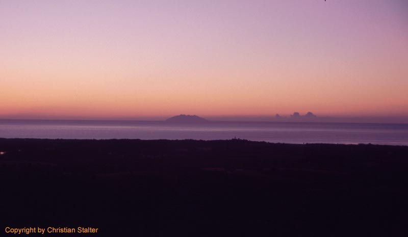 Morgens um 06:00 Uhr , Blick Richtung Osten bei ganz klarem Himmel, die Isola di Montecristo ist genial gut zu erkennen |