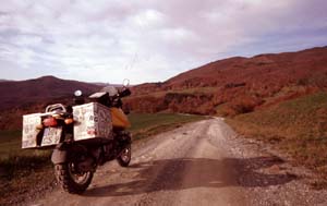 letzte 5 km waren noch ohne Asphalt (Bild rechts =>). In Verbindung mit dem prima Wetter und