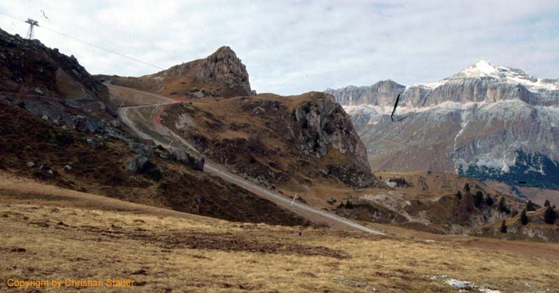 - Bild 12: Steilstes Stück der Abfahrt zur Mittelstation der Seilbahn. |