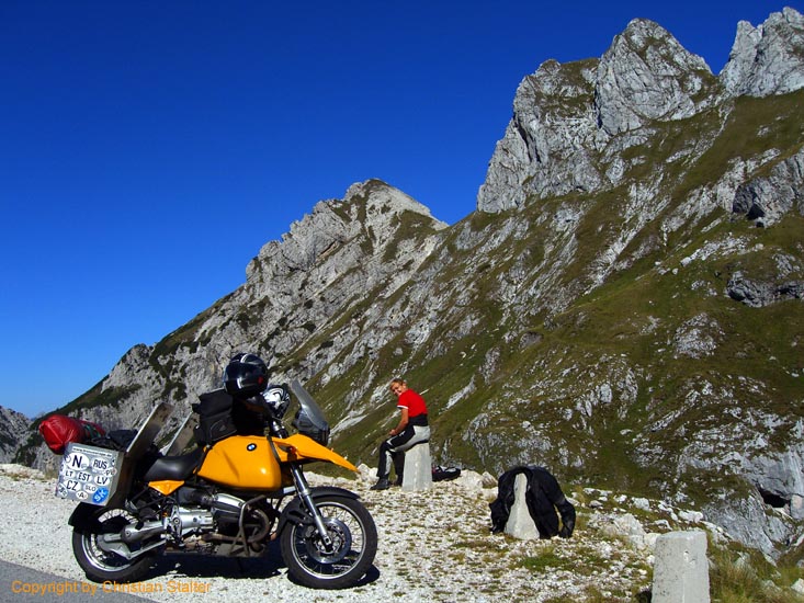 Großglocknerhochalpenstraße Das Bild zeigt uns am Montag Vormittag am Mangart in Slowenien (am nächsten Tag mussten wir schon wieder arbeiten)